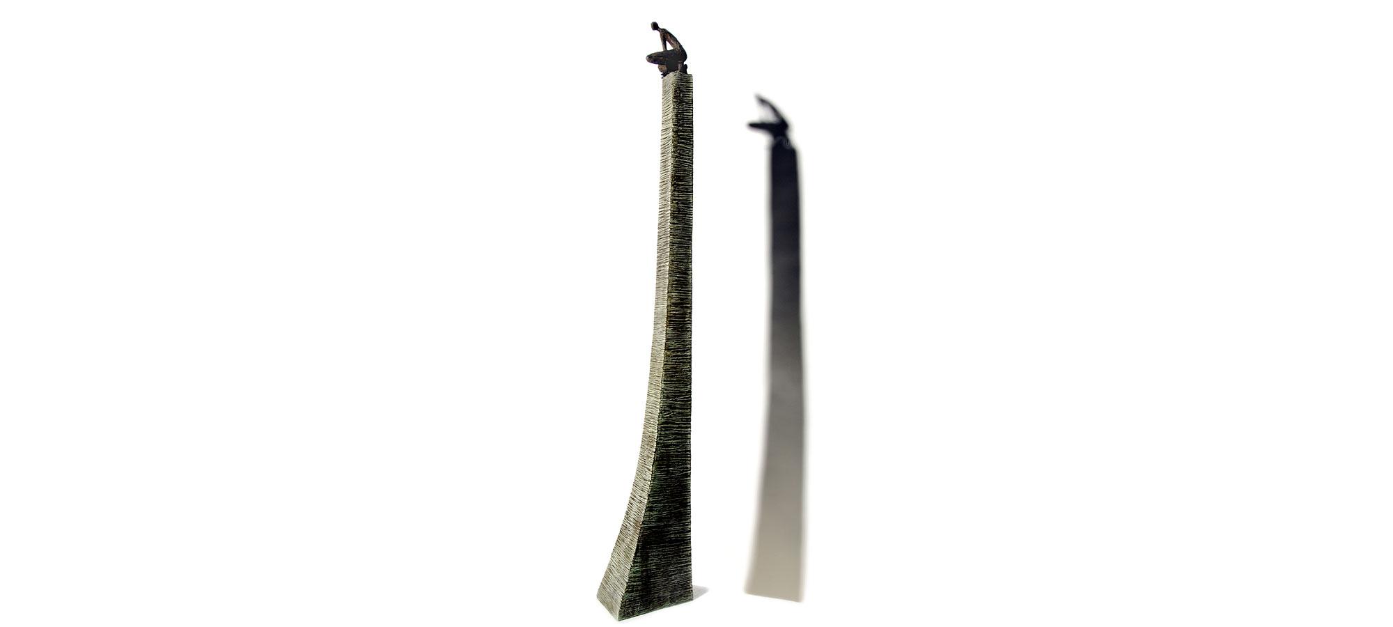 Crouching man on high square pedestal (L22.5xH124xP16.3 cm) – bronze 2005