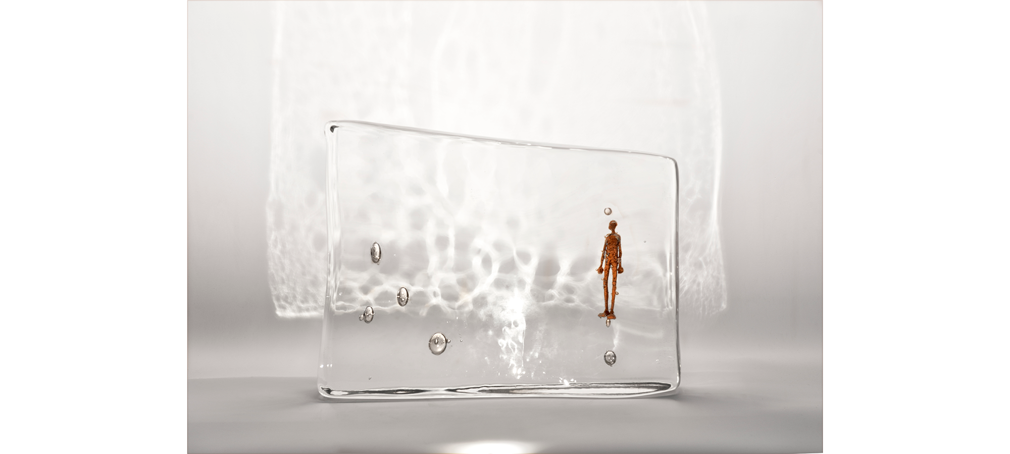 Voyage dans l’atmosphère (L36.5xH29xD8.5 cm) – Murano glass & bronze insert